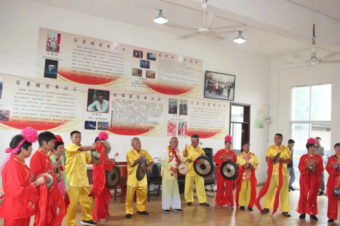 隨著老藝人們的集合完畢,便開始了演出前的鑼鼓排練。他們各司其職,首先為首的老人雙手揮動鼓棒,敲響最強音,鑼與镲緊跟其后,一瞬間似萬馬奔騰又似春雷滾滾,帶著排山倒海的氣勢震天憾地,響徹云霄,給我們心靈帶來了極大的震撼。這一刻這些老藝人哪還有衰老的姿態(tài),現(xiàn)場的氣氛直接被引燃,若不是近距離觀看我們絕對想不到這些老藝人們平均年齡已經(jīng)70多歲了!70歲仍然迸發(fā)出生命的激情,年齡只是個數(shù)字的累積!