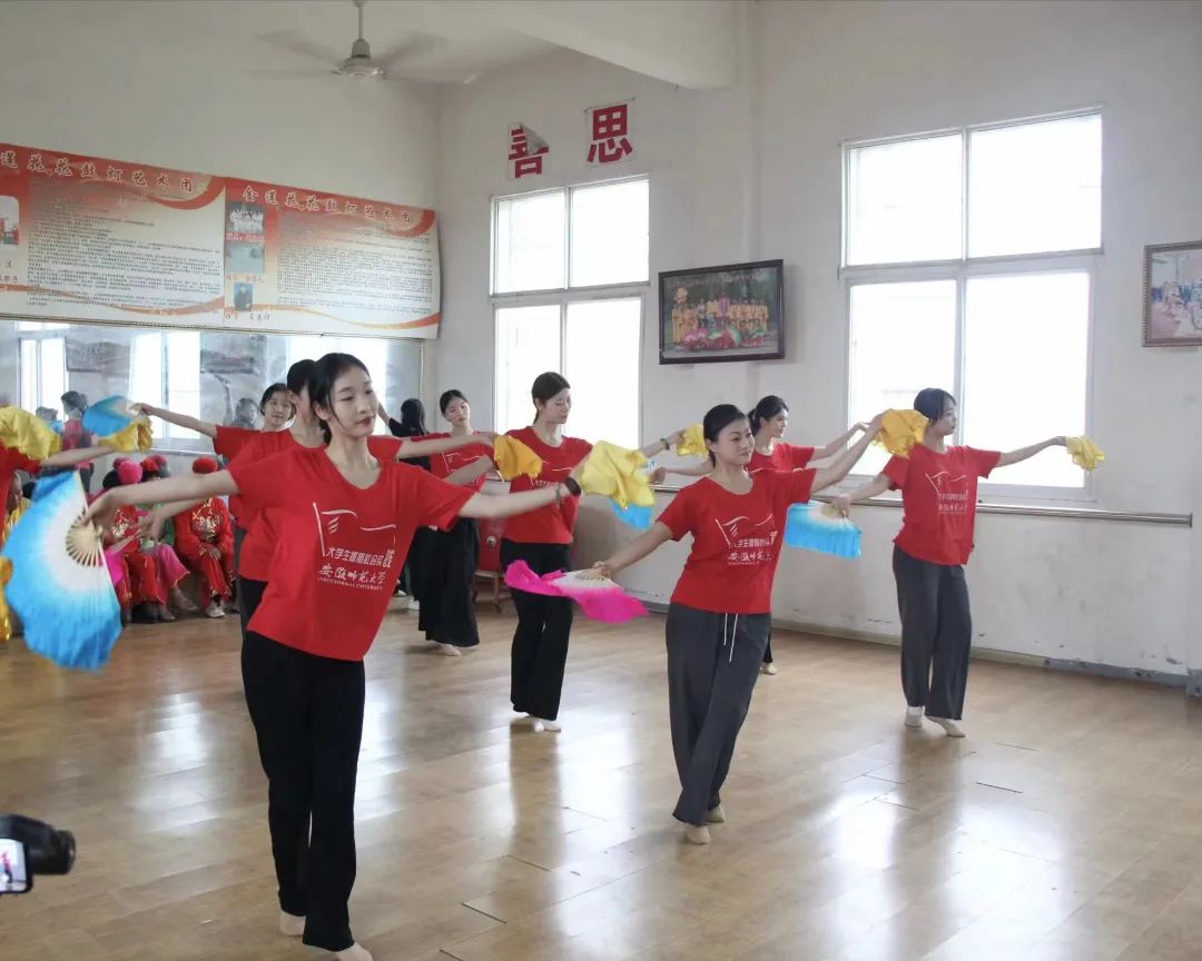 我們來到蓮花花鼓燈傳習(xí)基地對花鼓燈進行調(diào)研學(xué)習(xí)。初入蓮花花鼓燈傳習(xí)基地,看到樸實無華的練功房先是讓我們心中一驚,沒有先進的設(shè)施沒有明亮寬敞的舞蹈房,卻有滿墻的榮耀和歲月留下的痕跡。花鼓燈的傳承老藝人們并不是我們想象的那樣光鮮亮麗,但他們將個人浸入故土眷戀,匠心堅守非遺技藝的精神與泰然自處,甘之如飴的狀態(tài)讓人動容。“蘭花”們一如年輕時那樣在為表演前整理著裝打扮自己,“鼓架子”們擦拭著自己的老伙計一鑼鼓,這一刻我們仿佛穿越時光,看見了無數(shù)年輕的少年少女拋棄舒適的生活日復(fù)一日的練習(xí)只為向后代傳承這份獨屬中國的印跡,他們身上凝聚著歷史的厚重與力量,讓我們?yōu)橹畡尤荨?br />