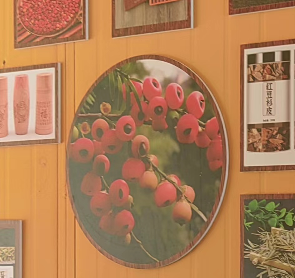 在紅豆杉文化長廊中,副書記指著墻上的圖片,向實踐隊成員介紹了紅豆杉的用途價值及相關產品,如紅豆杉皮、紅豆杉葉、復方紅豆杉膠囊、紅豆杉木雕、紅豆杉藥材等。紅豆杉,這一珍稀樹種,不僅以其獨特的觀賞價值著稱,更蘊含著豐富的經濟價值與藥用價值。紅豆杉皮、紅豆杉葉,皆是提取紫杉醇等抗癌藥物的重要原料;復方紅豆杉膠囊,則是現代醫學利用紅豆杉精華研制而成的抗癌良藥。