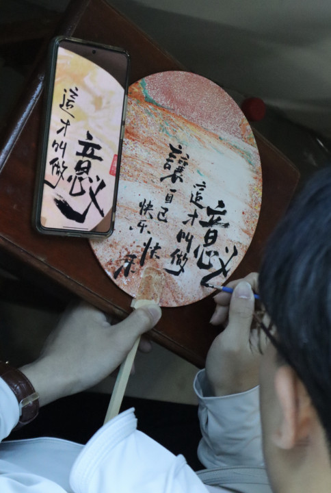 在經(jīng)歷了完整的制扇過程后,大家將漆扇進(jìn)行最終的晾制,每一個(gè)孩子都擁有了獨(dú)屬于自己獨(dú)一無二的漆扇。孩子們制作時(shí)一舉一動(dòng)都十分認(rèn)真,一絲不茍地在漆扇上作畫、寫字,從他們臉上洋溢著的笑容就能看出他們難以言表的喜悅。