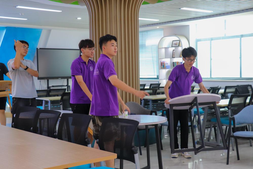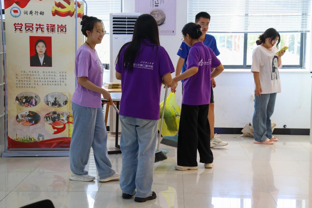 下午三點(diǎn),在隊(duì)長(zhǎng)李明宇的組織下,實(shí)踐團(tuán)開(kāi)展了對(duì)圖書閱覽室和教室的衛(wèi)生打掃工作,所有實(shí)踐團(tuán)成員參加。在打掃衛(wèi)生的過(guò)程中,成員們首先對(duì)閱覽室的桌子和椅子進(jìn)行重新編排,為小朋友們留出充足的活動(dòng)空間和上課空間,以便于更好的開(kāi)展教學(xué)實(shí)踐工作。