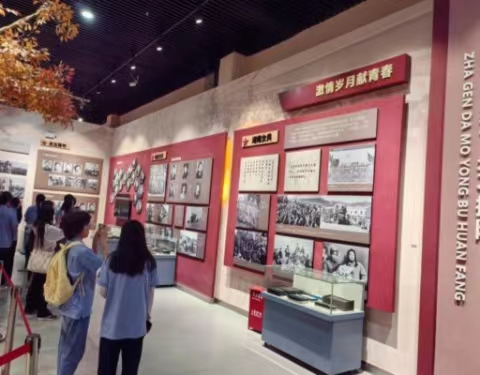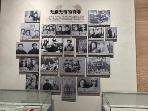 踏進廣場,兩側胡楊林立、道路延展,坐落于正中央的則是中國人民解放軍進軍和田紀念碑。金黃色的和田版圖被刻印在碑身之上,一條蜿蜒的紅線橫貫版圖之間,代表的正是1949年12月22日,原中國人民解放軍第一野戰軍一兵團二軍五師十五團徒步穿越塔克拉瑪干沙漠,鎮壓反動革命,順利解放和田的雄偉壯舉。進入展館內,一張張久遠的照片,一件件陳舊的用品,仿佛把我們帶回到那片風沙彌漫的戈壁,那段激情燃燒的歲月……四面八方的有志青年,紛紛響應黨的號召,趕赴邊疆,去到最艱苦的地方。在駝鈴悠悠的戈壁深處,不乏許多來自全國各地的女性豪杰。巾幗不讓須眉,她們同樣奮勇當先在開荒拓墾的第一線,揮灑汗水、奉獻青春,青絲成白發,堅守數十載,將生命之花盛放在大漠深處,成為最令人動容的“戈壁母親”。
