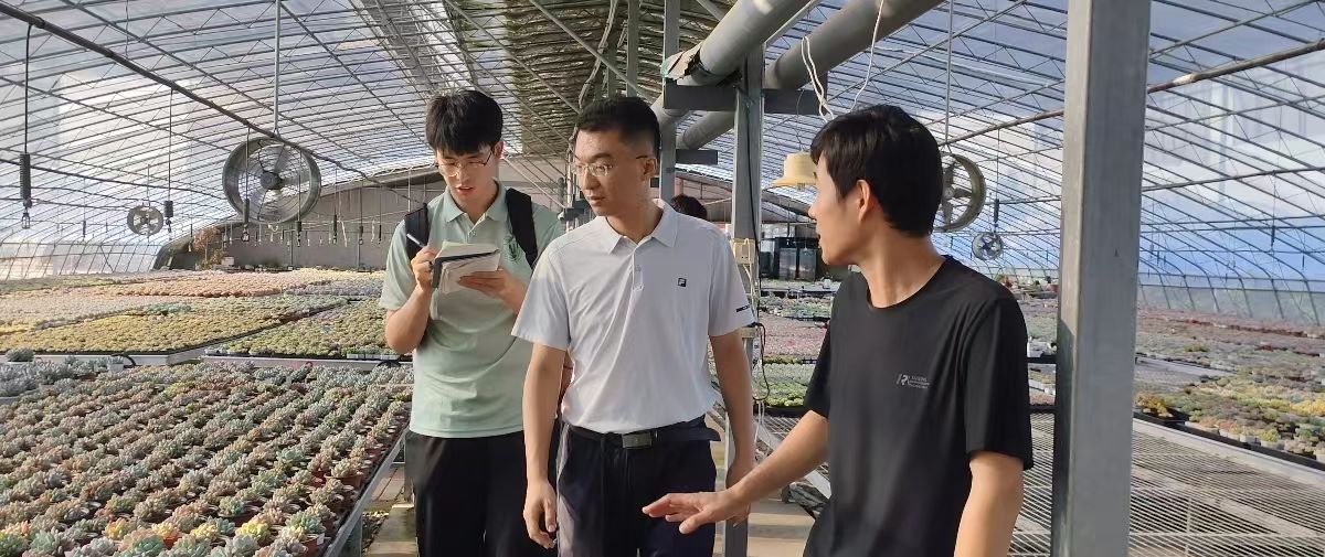 習近平總書記在黃三角農高區視察時強調,開展鹽堿地綜合利用對保障國家糧食安全、端牢中國飯碗具有重要戰略意義。在工作人員的帶領下,實踐服務團沿著習近平總書記在黃河三角洲農業高新技術產業示范區的考察足跡來到了鹽堿地農業試驗示范基地,學習節水控鹽灌排新模式、不同耐鹽梯度品種修復植被對比實驗,了解水肥一體化、節水滴灌等農業技術在田間的實際應用。實踐服務團參觀了山東省大豆品種耐鹽性鑒定試驗、鹽堿地耕地質量和產能提升平臺—FAO小區、作物田間標準化耐鹽鑒定平臺—鹽池、水—肥—鹽調控系統控制室。鹽堿地農業試驗示范基地實現了由治理鹽堿地適應植物向選育耐鹽堿植物適應鹽堿地轉變、由傳統的田間經驗育種向分子設計育種轉變,重點選育了耐鹽糧油作物、耐鹽牧草和耐鹽中草藥并實現了示范推廣和畝增效益顯著提高,對深入領會開展鹽堿地綜合利用、保障國家糧食安全、端牢中國飯碗具有重要戰略意義。實踐服務團參觀了東營利高農業有限公司,公司大力推進農業機械化和智能化,通過引進先進設施設備,擁有了齊魯樣板鄉村振興示范片區—利高花卉,將園區打造成了一家集多肉花卉、冬棗、西瓜等農產品種植推廣、示范、鄉村旅游、產學研基地于一體的現代化農業生產化園區。