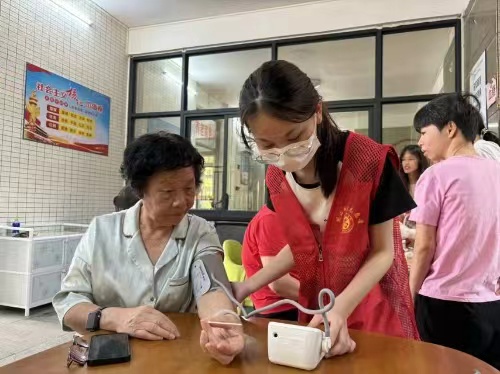 圖為隊員在為社區老人測量血壓,七里香宣傳部供圖