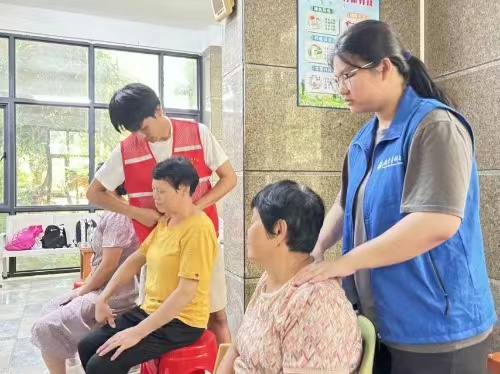 圖為隊員在為社區老人按摩,七里香宣傳部供圖