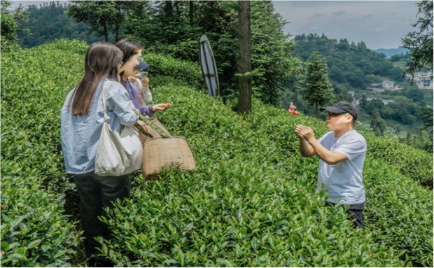 指尖輕提富農夢,匠心綠韻傳萬家茶田里,成員們背著采茶簍,親身體驗采茶的過程。茶農引導成員“采茶的時候,可不能掐,而是要捏住芽尖往上提,使其自然斷裂,這樣才有好品相,賣出好價錢”,這些采茶技巧也讓成員們深刻體會到每一片茶葉的背后都凝聚著茶農的汗水與智慧。田地里的采茶嬢嬢們動作干凈利落,通過一捏一提,走向他們的致富之路。