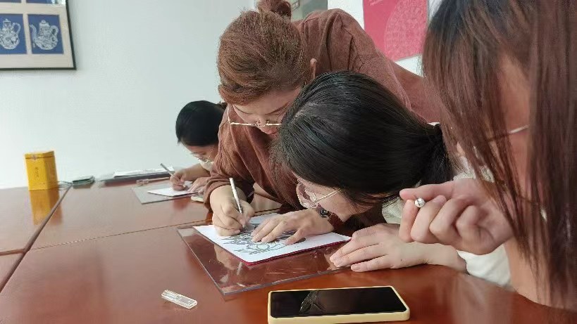 接著,在何老師的指導下,實踐團成員親自體驗了金壇刻紙的制作過程。成員們拿著刻刀,小心翼翼地在紙張上刻畫。雖然起初顯得有些笨拙,但隨著時間的推移,成員們逐漸掌握了技巧,感受到了刻紙帶來的樂趣和成就感。這次體驗讓大家深刻體會到了金壇刻紙藝術的獨特魅力和制作過程的艱辛與不易。