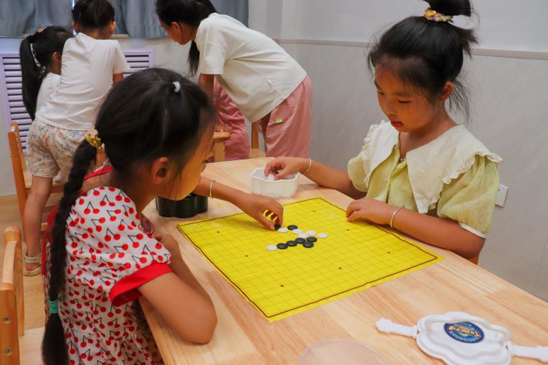 午餐過后,實踐團的成員們并沒有休息,而是迅速轉換角色,成為了孩子們的五子棋導師。五子棋不僅鍛煉了孩子們的邏輯思維能力,還讓他們學會了耐心和策略。每一張棋盤前都圍坐著一群聚精會神的小棋手,他們認真思考每一步棋,而實踐團的成員則在一旁指導,鼓勵孩子們發揮創造力,勇敢嘗試不同的走法。