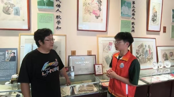 在古商城的一隅,實踐隊見到了錦灰堆第四代傳承人耿學知先生。錦灰堆,是一種以書法、繪畫、鑲嵌等技法相結合的傳統藝術形式,以其獨特的藝術魅力和歷史價值,被列入國家非物質文化遺產名錄。耿學知先生在錦灰堆藝術方面有著深厚的造詣和豐富的經驗,被譽為當代錦灰堆藝術的代表人物。