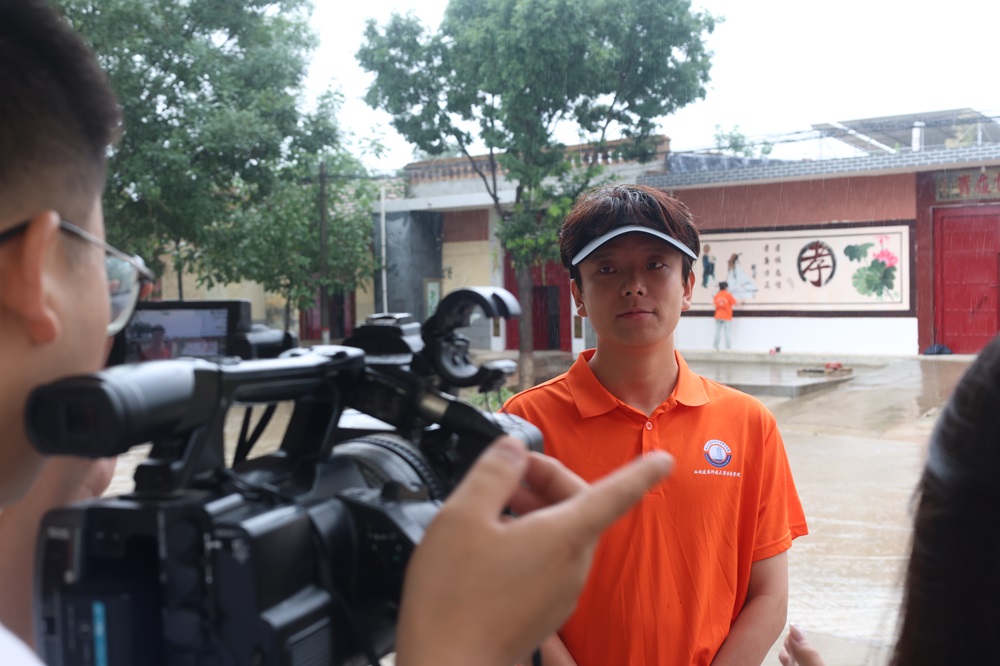 與此同時,白水縣融媒體中心的記者也于7月16日來到墻繪現(xiàn)場,隊長張聰向來訪記者詳細介紹了墻繪活動的創(chuàng)意來源、主題構(gòu)思、創(chuàng)作進度以及團隊成員在創(chuàng)作過程中的付出與收獲等內(nèi)容。