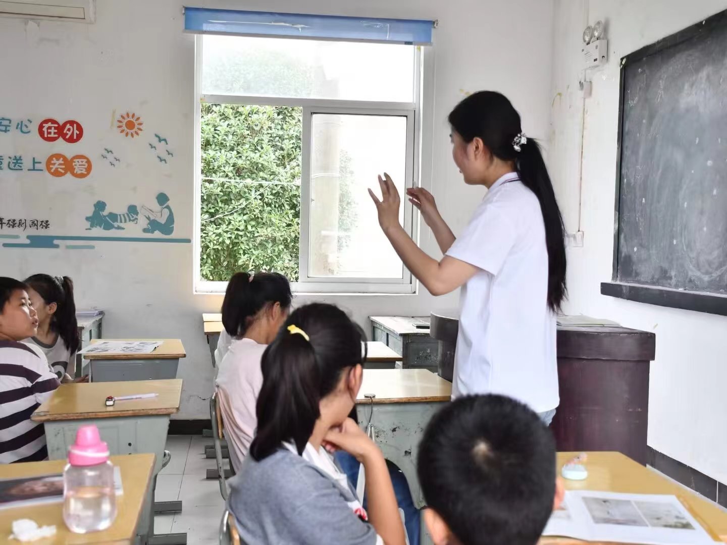 首先,隊(duì)員孫卓向同學(xué)們發(fā)放了有關(guān)牛角畫(huà),樹(shù)雕畫(huà)等繪畫(huà)的圖冊(cè),并系統(tǒng)介紹了其起源和傳承人,如起源于安徽巢湖的牛角畫(huà),它以特制的牛角為材料,選用純天然的植物顏料,通過(guò)精湛的技藝,在牛角上描繪出色彩斑斕的圖案。隨后,宣講現(xiàn)場(chǎng),孫卓手持畫(huà)冊(cè),與孩子們展開(kāi)了一場(chǎng)生動(dòng)的互動(dòng)。她引導(dǎo)孩子們仔細(xì)觀察畫(huà)冊(cè)中的牛角畫(huà)與樹(shù)雕畫(huà),鼓勵(lì)大家猜測(cè)畫(huà)中的奧秘,并耐心解答每一個(gè)疑問(wèn)。孩子們興奮地指著畫(huà)冊(cè),提出自己的見(jiàn)解,與宣講成員熱烈討論。在輕松愉快的氛圍中,孩子們不僅領(lǐng)略了傳統(tǒng)繪畫(huà)的魅力,還深刻體會(huì)到了巢湖非遺文化的獨(dú)特韻味。這種互動(dòng)不僅拉近了彼此的距離,也讓非遺文化的種子在孩子們心中生根發(fā)芽。最后,宣講隊(duì)隊(duì)員與孩子們合影留念,定格非遺文化傳承的美好瞬間。