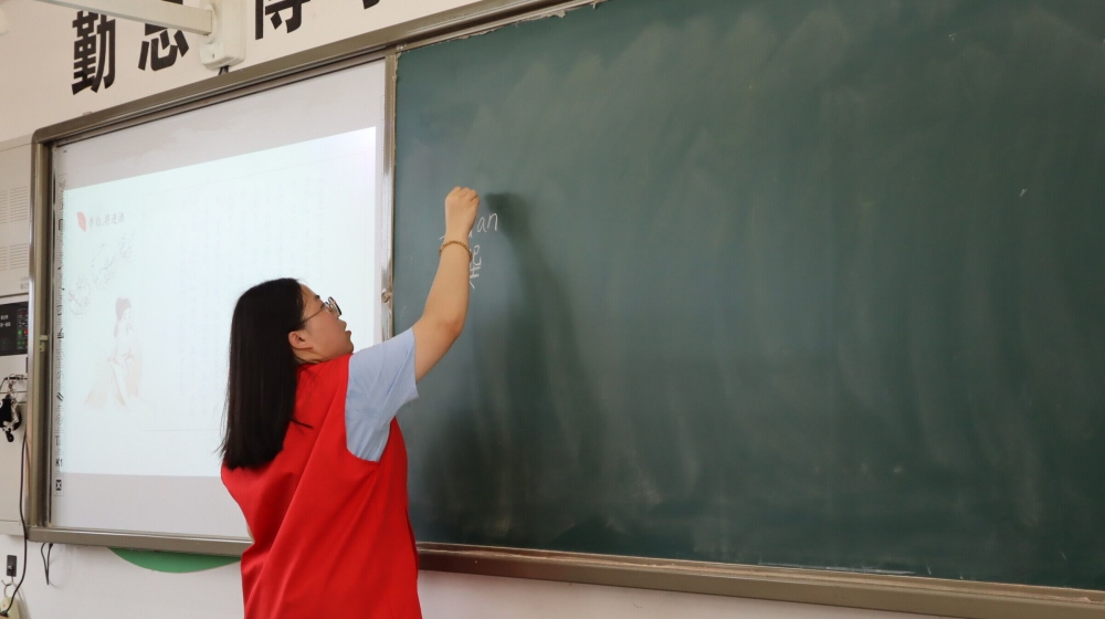除了基本知識的講解,志愿者還加入了大量的互動環節,組織學生們進行詩歌創作、背誦和朗誦比賽。在創作環節,學生們在老師的指導下,融匯唐宋不同時期的風格,拘于一定的格律,嘗試自己構寫唐詩,反復斟酌,調試韻腳,不斷地鍛煉著自己的文學素養和表達能力。在背誦和朗誦比賽中,學生們熱情高漲,紛紛登臺展示自己的才華,將中學所學知識融會貫通,一氣呵成寫下千古流傳的妙語佳句,他們也在現場濃厚的文化氛圍下燃起斗爭之志,比賽詩詞的熟知程度與應用能力。最后,黑板上留下了學生們多彩的字跡,浸入了濃濃的文化芳香。