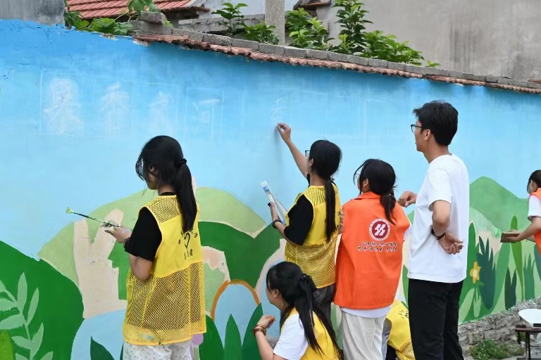 圖為實踐隊員進行墻繪 實踐隊員 彭藝菲 供圖