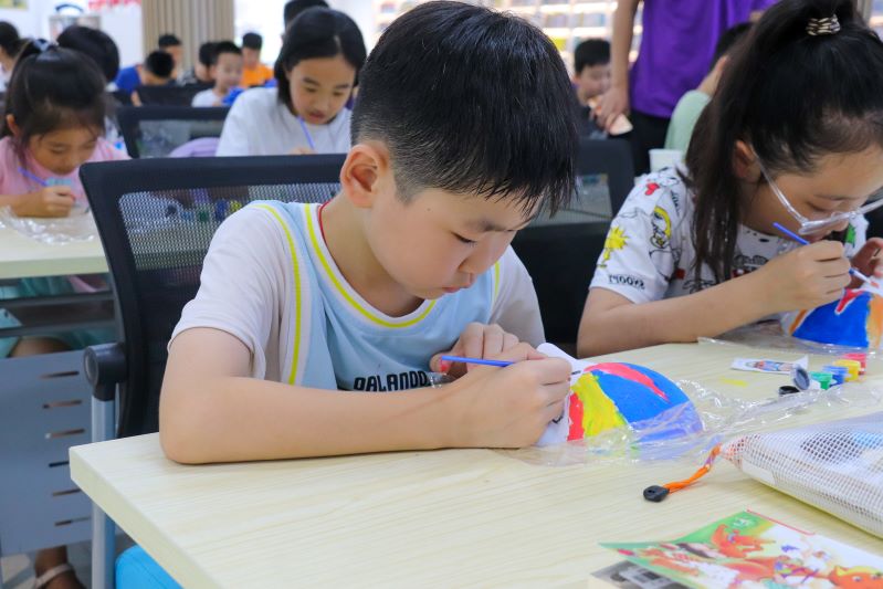 為進一步提升孩子們對京劇臉譜文化的了解,課程還設計了京劇臉譜宮扇手工涂繪環節,實踐團成員詳細講解了繪制臉譜的步驟和技巧,如如何調配顏料、如何勾勒線條等。在實踐團成員的耐心指導下,孩子們興致勃勃地動手繪制,一筆一畫地描繪出豐富多彩的臉譜世界。