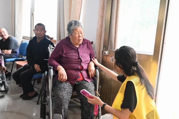 圖為團(tuán)隊(duì)成員對(duì)孤寡老人進(jìn)行心理疏導(dǎo)