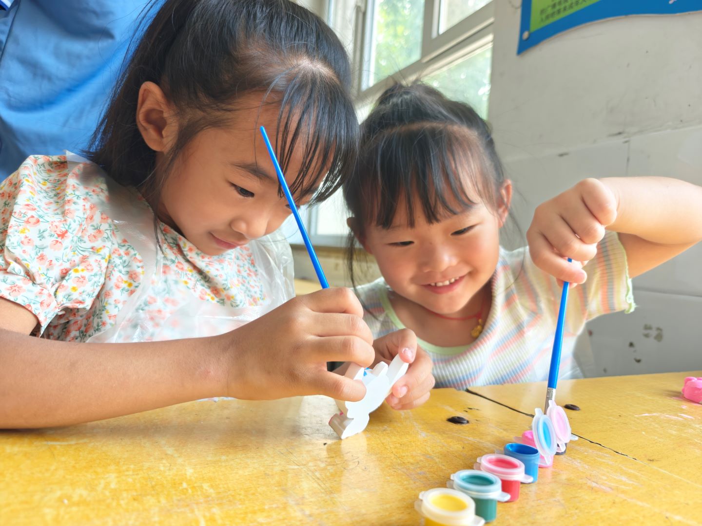 弘揚美育精神,涵養美好心靈。習近平總書記指出:“要弘揚中華美育精神,讓祖國青年一代身心都健康成長。”負責繪畫與手工的志愿者老師們憑借專業的素質與技能,根植優秀文化,結合兒童學習特點,針對性地面向孩子們開展繪畫手工教學,弘揚中華美育精神。孩子們迫不及待地用手中的畫筆,參與到畫卷、石膏畫等創作活動中,他們以純真的視角和豐富的想象,描繪出心中對黨和國家濃濃的熱愛。