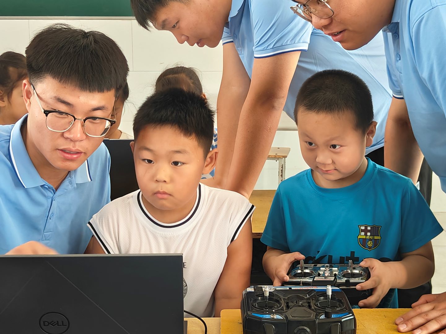 科學引領前沿,技術賦能未來。無人機和機器人專業的同學們憑借扎實的專業基礎,為村里小朋友們帶來了一場別開生面的無人機飛行模擬和機器人操控課程。隊員們耐心講解、手把手指導,幫助孩子們了解并掌握無人機和機器人的基本原理和操作方法。孩子們興趣盎然,親手握住模擬器遙控器,成功操控模擬軟件中的無人機起飛、盤旋、降落,小巧靈活的機器人也在指令下,前進、后退、轉身,成功執行了各種有趣的任務。大家沉浸在與無人機和機器人互動的好奇與快樂中,想象力和創造力在這一刻被充分激發,每個人收獲著滿滿的成長和感動。隊員們用自己的專業知識,讓孩子們看到了未來發展的無限可能,為鄉村兒童點燃了對科技的熱愛之火,打開了一扇通往未來的科技之門。