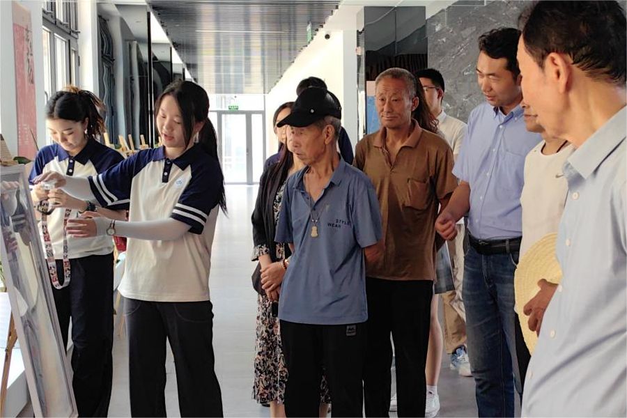 開幕式結束后,大家走進展廳,拾文思源實踐隊梅紫萱、鄧茜珈講解了作品的創作理念,大家深入了解非遺文化與藝術元素的融合,一幅幅作品美觀精妙、獨具匠心,受到了觀眾們的交口稱贊。