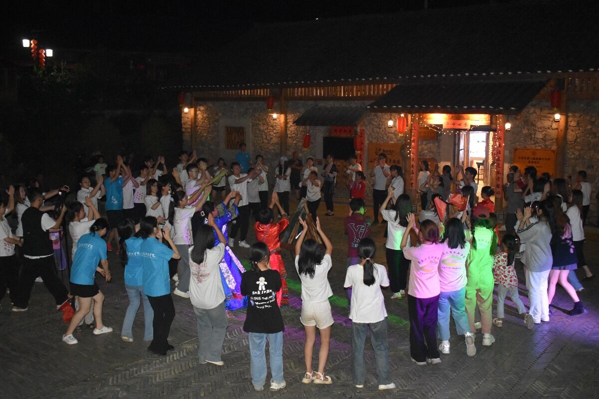 晚上七點,隨著火把的點燃,篝火晚會正式拉開帷幕,現場氣氛熱烈,村民們和實踐團成員手拉手圍著篝火載歌載舞,共同感受著這份來自心底的溫暖和喜悅。