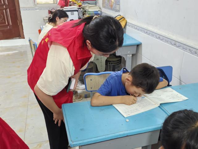 圖為團隊成員王子怡對兒童進行課業(yè)輔導(dǎo) 中國青年網(wǎng)通訊網(wǎng) 金元暉 攝