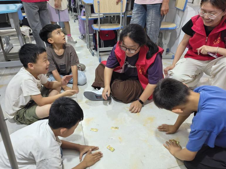 課內(nèi),志愿者們通過有趣的教學(xué)方式激發(fā)孩子們學(xué)習(xí)熱情,在課上他們會積極與學(xué)生互動,以此來激發(fā)學(xué)生們的積極性。在課上他們給孩子們解答過疑題,也回答過各種奇奇怪怪的問題,解答過為什么云朵為什么不會砸下來,為什么月亮?xí)粒瑸槭裁椿ǘ湎矚g陽光,他們通過給回答的孩子們小紅花,無論是否答對都會給孩子們小紅花,讓孩子們通過小紅花來兌換獎品。