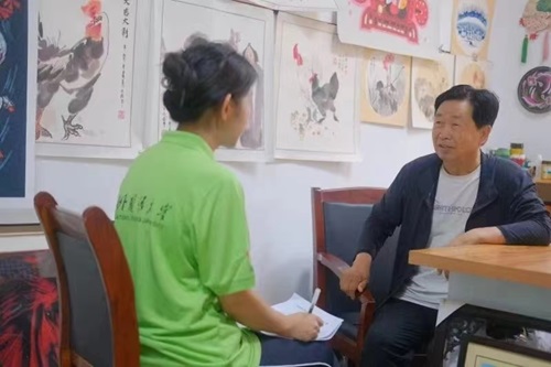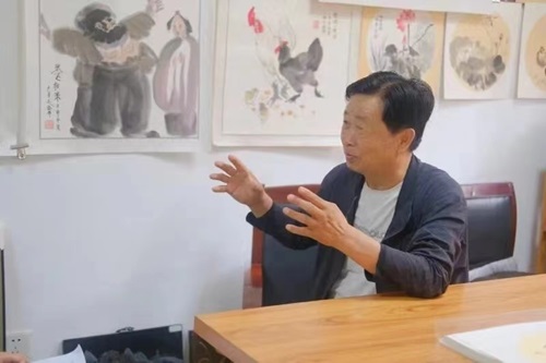 訪談中,雒志儉畫家首先向?qū)嵺`團(tuán)介紹了自己與農(nóng)民畫的結(jié)緣經(jīng)歷。他回憶起自己從小在泥土中長(zhǎng)大的日子,以及表哥的啟蒙對(duì)他走上繪畫道路的重要影響。雒志儉表示,正是那份對(duì)繪畫的熱愛(ài)和堅(jiān)持,讓他能夠在艱苦的環(huán)境中不斷前行,最終成為農(nóng)民畫領(lǐng)域的佼佼者。