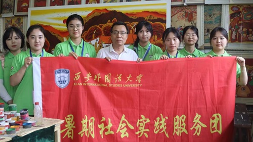 為深入貫徹文化交流之宗旨,弘揚民族藝術之精髓,西安外國語大學“探終南山之景,觀民俗之姿”——鄠邑縣農民畫發展現狀調查研究實踐團于7月12日踏訪了隱匿于翠綠山河之間的東韓村。該村以農民畫著稱,畫作不僅捕捉了鄉村生活的質樸韻味,更蘊含著深厚的文化積淀。團隊通過訪談、問卷及親身體驗之方式,對當地農民畫的傳承與發展進行了全面而深入的調研,以期探索其背后的藝術真諦與發展現狀。