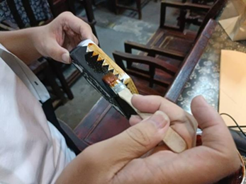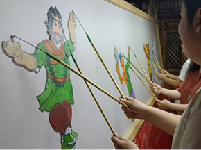 皮影,作為中國(guó)古老的傳統(tǒng)戲劇形式,通過(guò)在半透明的皮紙上剪出各種人物形象,并在燈光的照射下進(jìn)行表演。這種技藝不僅在藝術(shù)表現(xiàn)上具備獨(dú)特的戲劇性和視覺(jué)效果,還承載著中國(guó)豐富的文化內(nèi)涵和傳統(tǒng)價(jià)值。如今,皮影不僅在中國(guó)國(guó)內(nèi)得到保護(hù)和傳承,還逐漸受到國(guó)際社會(huì)的重視和歡迎,成為文化交流的重要橋梁和文化遺產(chǎn)的重要代表之一。小組成員們通過(guò)親自上手體驗(yàn),感受到了來(lái)自皮影的樂(lè)趣以及其蘊(yùn)含的中華傳統(tǒng)文化。