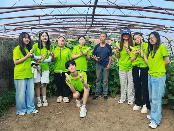 圖為志愿者去到村民家里一起摘黃瓜。 張宇涵 攝