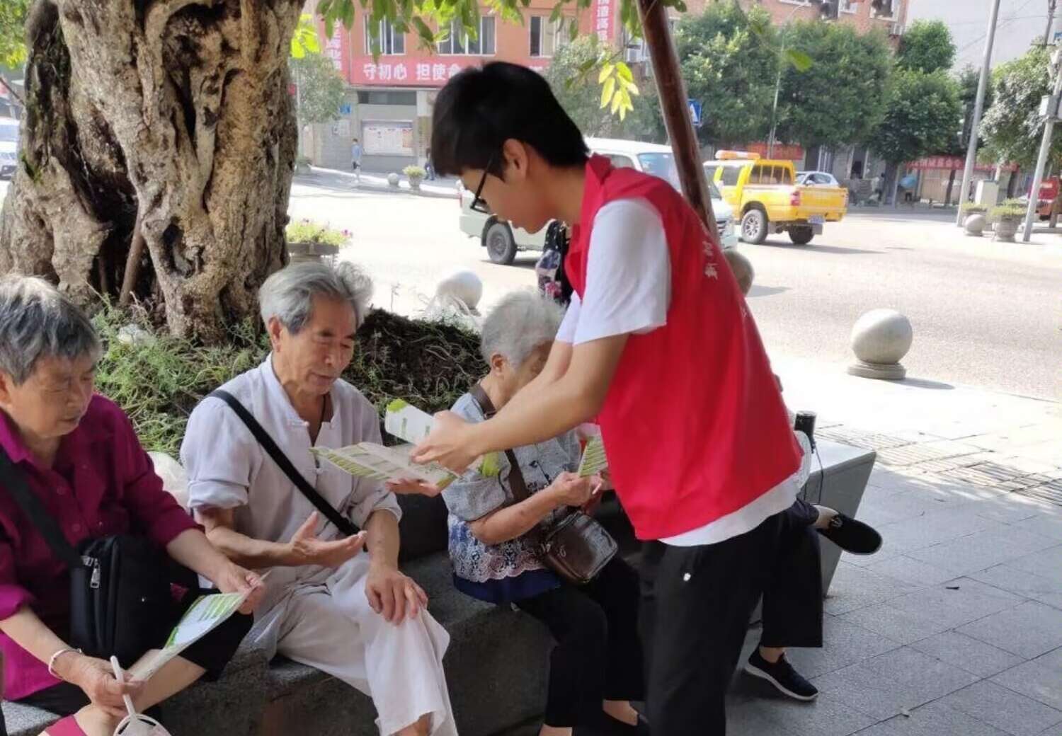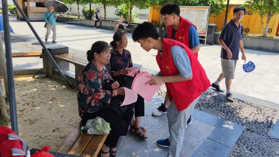 圖為實(shí)踐隊(duì)員正在為居民解答問題