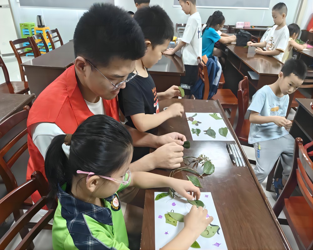 圖為樹葉繪畫課中小朋友創作樹葉畫。通訊員 王忠祥 攝