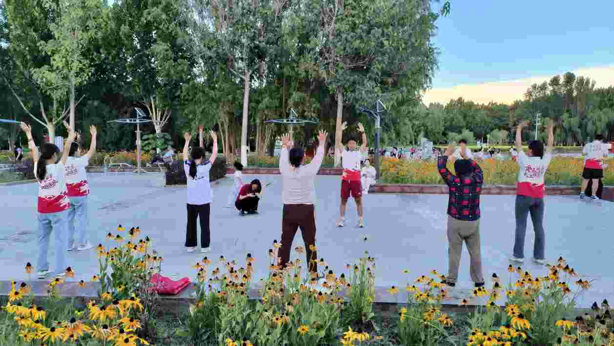 緊接著,團隊成員開啟了八段錦的教學。他們首先條理清晰、深入淺出地為大家闡述了八段錦源遠流長的歷史,著重強調了其顯著的健身功效以及重要的練習要點。在示范環節,團隊成員身姿挺拔,動作流暢優美,一招一式皆展現出八段錦剛柔并濟的獨特魅力。正在屯墾文化公園鍛煉的大媽們被這精彩的展示深深吸引,紛紛興致盎然地主動加入學習隊伍。大家全神貫注,緊密跟隨團隊成員的節奏,用心模仿每一個動作。歷經數小時的專心學習,大媽們從最初的略顯生疏,逐漸變得熟練起來。他們的動作愈發標準,節奏把握愈發精準。當順利完成整套八段錦的動作后,每個人都面色紅潤,額頭微汗,切實感受到了身心的舒暢與放松。大媽們興奮難抑,激動地表示:“日后不僅自己要持之以恒地練習,還要積極帶動身邊的姐妹們一同參與,讓大家都能盡情暢享八段錦帶來的健康與快樂。”