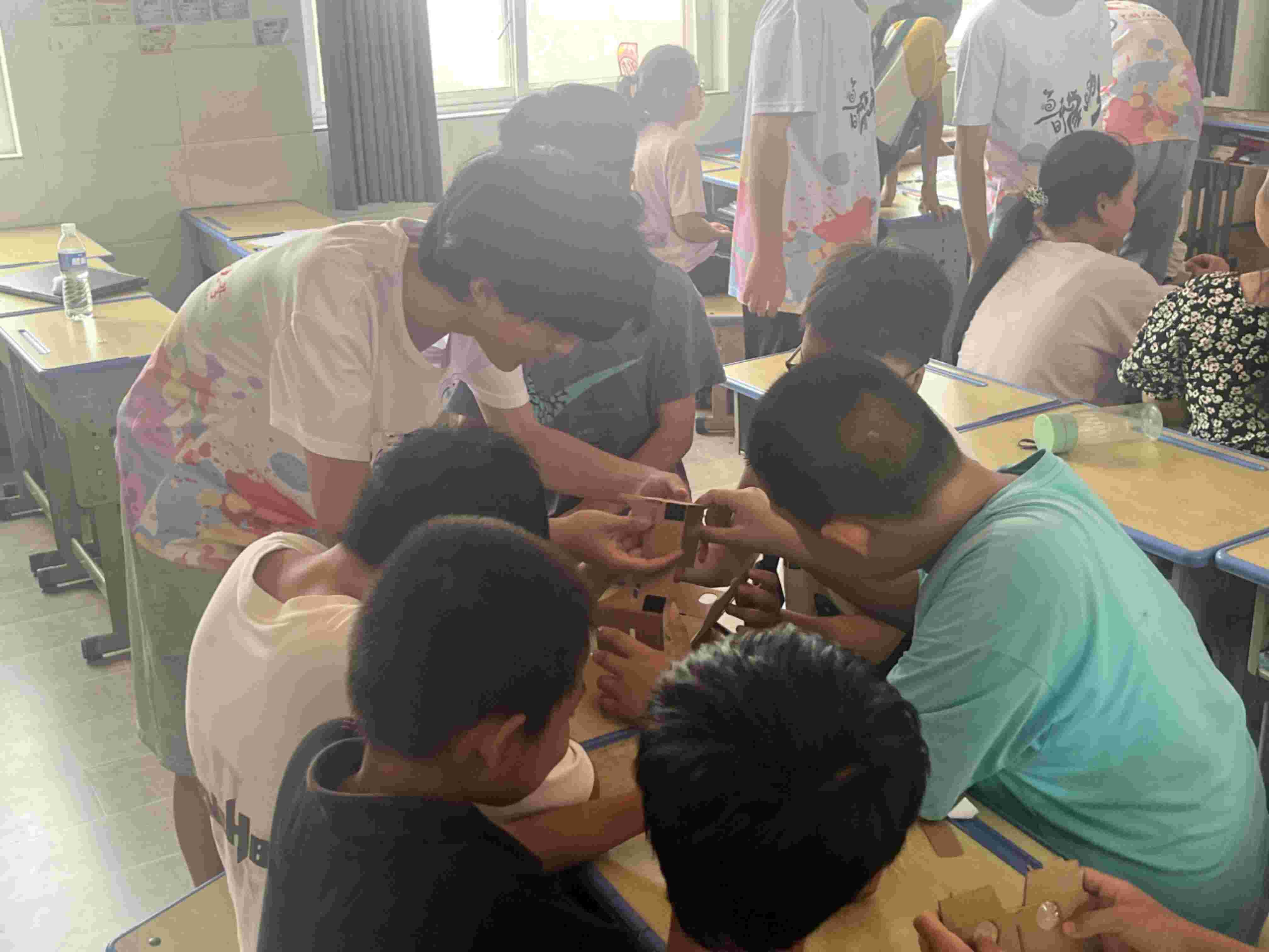 下午3點(diǎn),支教隊(duì)隊(duì)員在各個(gè)班級(jí)開(kāi)展科技創(chuàng)新活動(dòng)。一二年級(jí)以“飛行的秘密”和“小吸管搭世界”為主題開(kāi)展科創(chuàng)活動(dòng),感受重力與阻力的存在。三四年級(jí)開(kāi)展“感受中國(guó)科技的神奇”為主題的活動(dòng),觀看《坐標(biāo)中國(guó)》視頻,感慨中國(guó)發(fā)展的來(lái)之不易。五六年級(jí)則選擇制作簡(jiǎn)易VR眼鏡來(lái)探索科學(xué)秘密,在班主任的帶領(lǐng)下,孩子們按照步驟開(kāi)始制作,感受3D世界的魅力。