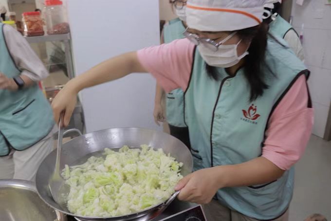 在包餃子前,義工們需要做好一些準備工作。首先,他們們準備好了各種各樣需要用到的食材,包括面粉、水、鹽和一些粉絲,包菜,豆腐,花菜之類的餡料。準備好食材之后,他們對這些食材進行了初步的處理,先將菜用水清洗干凈,然后放在鍋里用清水煮熟。