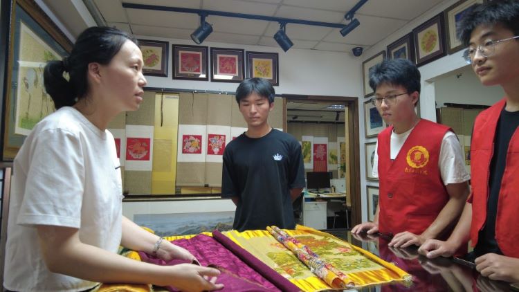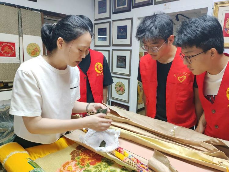 南京云錦宜貢坊作為云錦生產廠家之一,將傳統文化與現代科技相融合,讓云錦煥發出無窮的魅力。一踏入云錦宜貢坊,成員們便被眼前華美壯觀的云錦制品所吸引。從精美的龍袍、鳳袍到各式各樣的云錦圍巾、手袋,傳統美感和現代產品的實用性相融合,既保留了云錦的傳統魅力,又賦予了它現代的活力。在講解員的帶領下,成員們詳細了解了現代云錦產品的制作過程,包括絞絲、筒子絡絲、單絲打捻、并絲、復捻等復雜工序,以及最為關鍵的“挑花結本”技藝。通過參觀學習,團隊成員深入了解傳統文化,感受到非遺文化的無窮魅力,他們紛紛表示,定要學好科技文化知識,用科技賦能文化傳承,以行動弘揚中華優秀傳統文化。