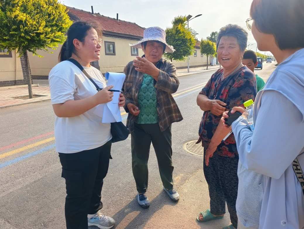 圖為村民向實踐隊員講述村莊發展與安逸生活。翟雨菲供圖
