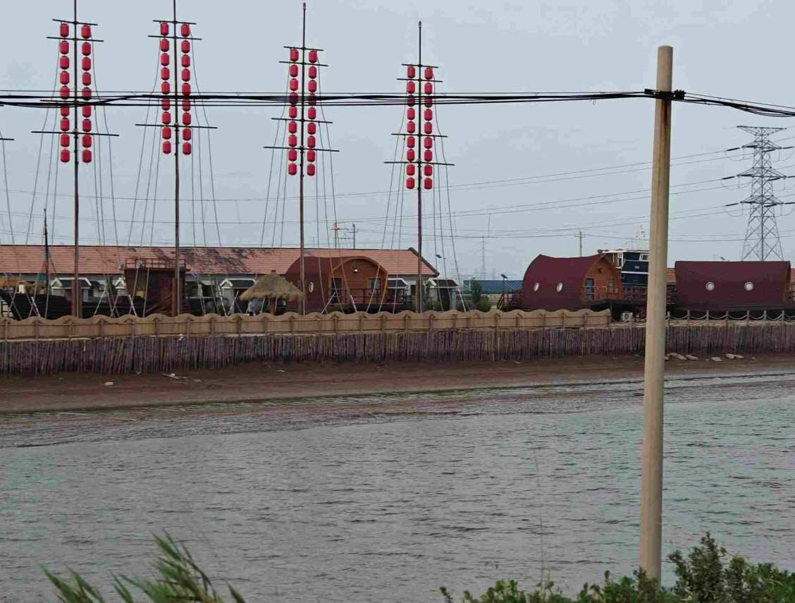 實踐隊員抵達紅光新村后,首先觀察到了村中的特色民宿。一艘艘船型特色民宿建于河流沿岸,其外觀復刻了古典船只的優雅線條,船體大多紅木,表面覆以歲月痕跡的斑駁漆色,船身兩側,鑲嵌寬大的窗戶;船尾處,設有一方小巧的甲板,擺放著幾把藤編座椅和茶幾,為民宿增添了幾分生機與活力。后經村委會工作人員介紹,并隨著社會實踐的深入,實踐隊員逐漸了解到東營市在推動漁旅融合方面所做的努力與成就。政府和企業攜手合作,通過發展休閑漁業將漁業與旅游業緊密結合,為漁民們開辟了新的生計之路。實踐隊員詳細了解了漁民們從傳統的捕撈和養殖向休閑漁業轉型的過程。漁民學會了利用自身的資源和優勢,為游客提供豐富的旅游體驗。有的漁民將自家的漁船改造成觀光船,帶領游客出海觀光、體驗捕撈的樂趣;有的則利用自家院落,打造特色民宿,讓游客在體驗漁家生活的同時,也能品嘗到地道的海鮮美食。