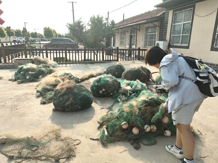 圖為實踐隊員觀察漁網修補晾曬情況。李浩宇供圖