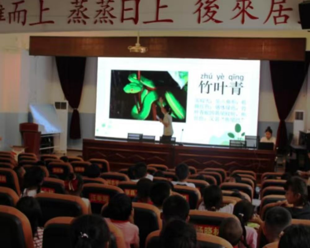 夏季來臨,隨著氣溫逐漸升高,蟲蛇活動愈發頻繁,為了提高村民自我保護意識,7月10日,懷化學院生物與食品工程學院赴貴州省黔東南苗族侗族自治州暑期社會實踐團前往革一鎮中心小學開展生物科普宣講活動,向小朋友傳遞生態保護意識和正確戶外遇蛇應對方法。
