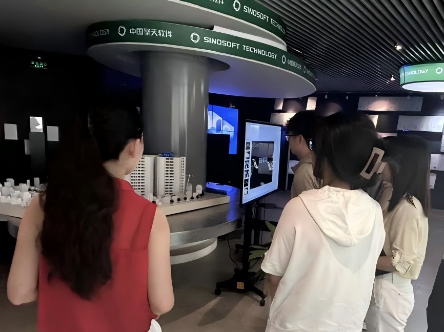 在運(yùn)營總監(jiān)郭李麗女士的引領(lǐng)下,實(shí)踐隊(duì)第二站來到了企業(yè)的成果展廳。這里,通過詳實(shí)的展示板和生動的實(shí)物展示,學(xué)生們初步了解了擎天科技的成長歷程、主要產(chǎn)品及服務(wù),以及公司在信息化平臺建設(shè)、碳管理數(shù)字化解決方案和財稅數(shù)字化轉(zhuǎn)型等領(lǐng)域取得的重要成就。展廳中,公司如何運(yùn)用大數(shù)據(jù)技術(shù)提升城市管理效率,以及如何利用數(shù)字化手段進(jìn)行碳管理的案例特別吸引了學(xué)生們的注意。這些內(nèi)容讓學(xué)生們對公司的業(yè)務(wù)有了更加直觀的認(rèn)識。