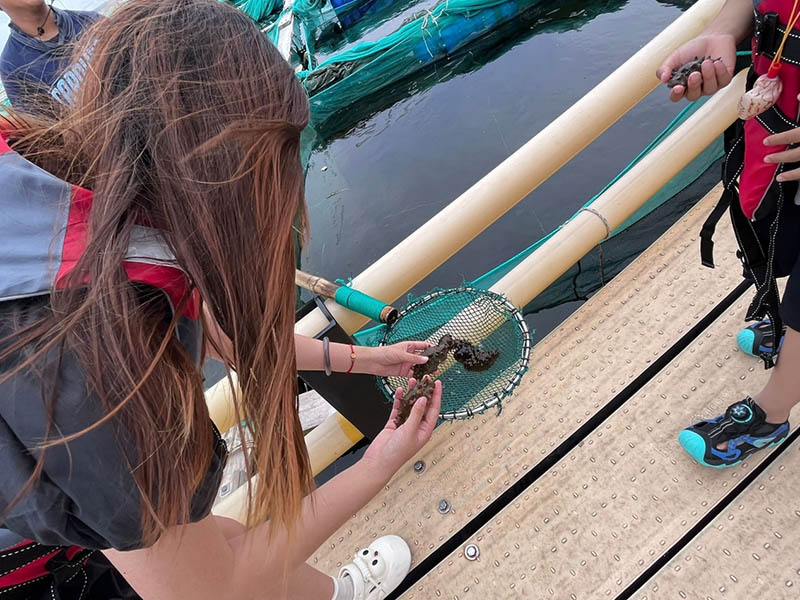 圖為實踐隊員近距離接觸海參。中國青年網通訊員 周鈺晴 供圖