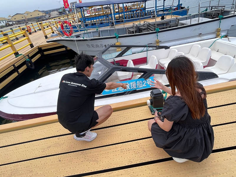 隨著海洋旅游的發展,海洋救援知識的教育與普及變得日益重要。通過與景區工作人員的交談,實踐隊成員了解到海上環境復雜多變,存在惡劣天氣、海灘事故、人員落水等潛在危險。當海上事故發生時,時間就是生命,掌握海上救援知識,能夠使人們在緊急情況下迅速做出反應,采取正確的自救和互救措施,從而最大限度地保障個人及他人的生命安全。隊員們向工作人員請教了海上應急救援的基礎理論與操作要點,并在理論學習結束后,在工作人員的指導下進行了實地觀摩和模擬演練。在扮演不同的救援角色進行模擬演練的過程中,實踐隊成員意識到在救援行動中救援人員需要保持冷靜、果斷的頭腦,迅速做出正確的判斷和決策。同時,每個成員都需與隊友緊密協作,共同應對各種挑戰和困難,從而使得救援的每一個環節都做到準確、迅速和有效。通過模擬真實場景下的救援過程,隊員們不僅加深了對救援理論知識的理解,還初步掌握了海上應急救援的基本技能。