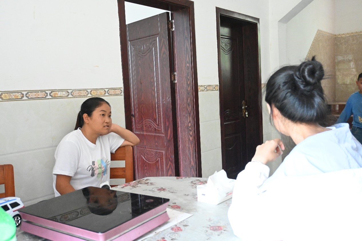 圖為支教隊長王美舒正在與朱睿母親交流 張春銳攝