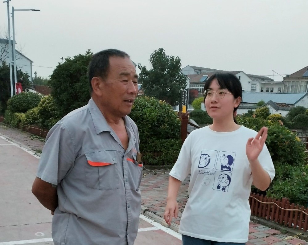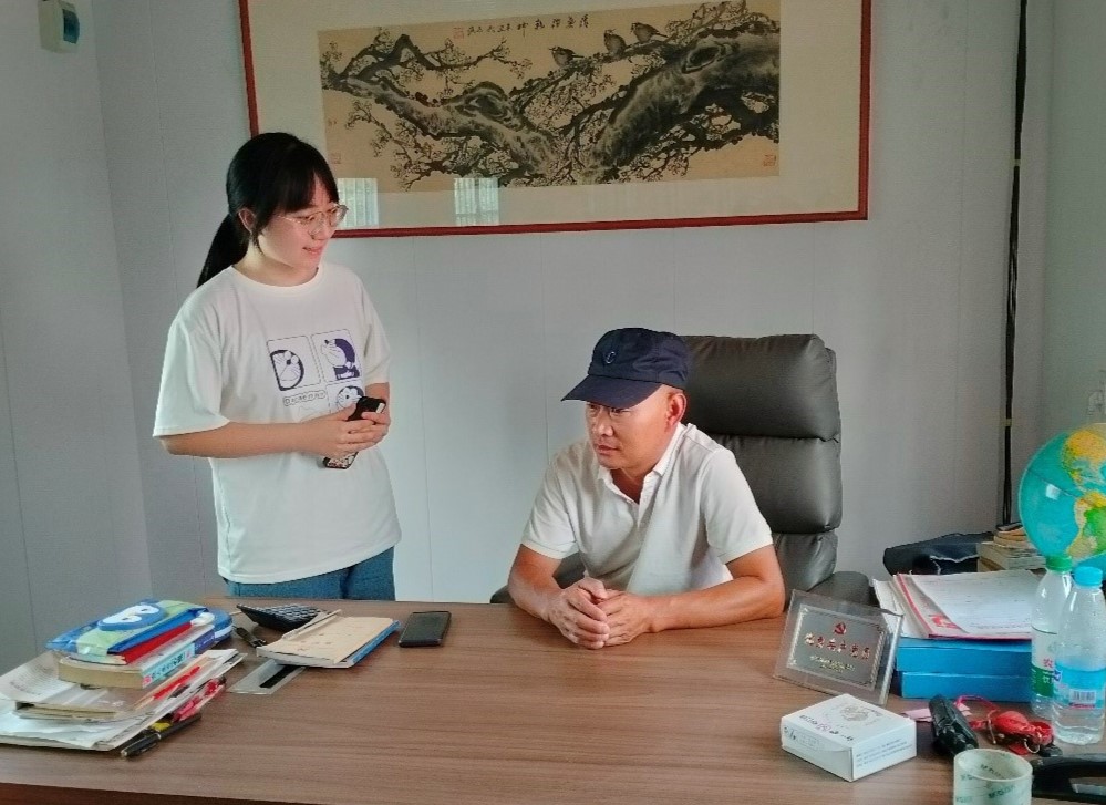 圖為小組成員采訪當(dāng)?shù)剜l(xiāng)村實(shí)業(yè)家