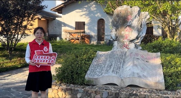 (圖為實踐隊的隊員在中復(fù)村錄制《紅軍長征的光輝起點——中復(fù)村》主題思政微課,用當(dāng)代青年喜歡的方式傳播、弘揚長征精神。)