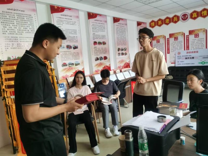 吳茂林向團隊成員介紹了退役軍人協會的發展歷程,講述了泗水縣老戰士的光榮事跡與生活現狀,闡釋了老戰士們所代表的沂蒙紅色精神,并分享了其大學生時代的志愿服務經驗,表達了希望更多青年人參與到老兵志愿服務事業中來的愿望。隨后,尋訪團與吳茂林共同探討了高齡老戰士的物質和精神需求,以及青年人服務老戰士的有效方式。最后,尋訪團向協會表達了希望走訪老戰士的愿望,經商討后,雙方約定8月8日走訪三位分別參加過抗日戰爭、解放戰爭與抗美援朝戰爭的老戰士。