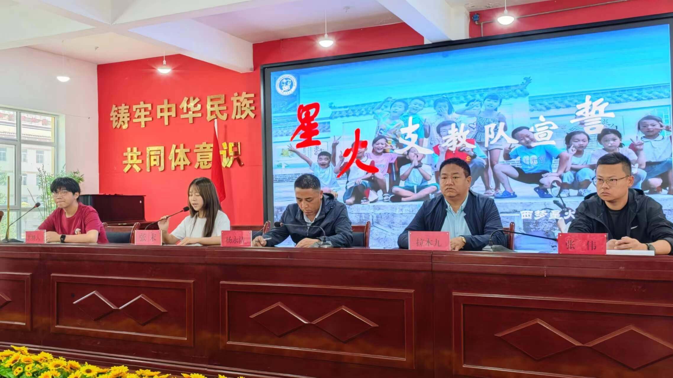 “我志愿成為一名光榮的支教志愿者,我將以滿腔熱血、堅(jiān)定的決心投入到暑期支教活動(dòng)當(dāng)中。用我們的愛心、耐心、責(zé)任心,盡己所能,竭盡全力嚴(yán)以律己,為人師表,堅(jiān)守我們的初心,踐行志愿服務(wù)精神,圓滿完成此次支教任務(wù)。”伴隨著支教隊(duì)全體成員鏗鏘有力的誓言,本次開營(yíng)儀式落下帷幕。