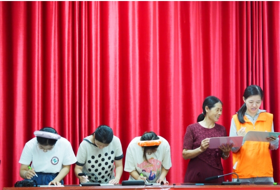 ▲實(shí)踐團(tuán)成員幫助家長(zhǎng)填寫(xiě)問(wèn)卷