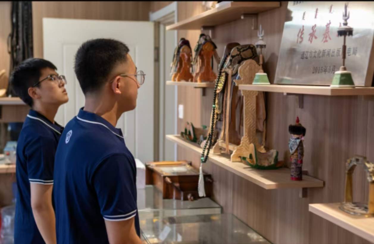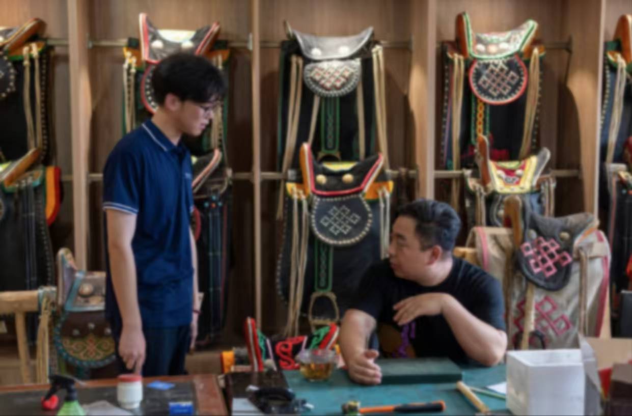 實踐隊成員們參觀了科左后旗物質文化遺產保護中心。其中,蒙古族馬具制作技藝傳承基地給同學們留下了深刻印象。在傳統工藝人的耐心講解下,成員們不僅了解了馬具的制作流程,了解了不同大小、類型的馬具在不同場合被賦予的含義,而且深切地感受到了傳統手工藝的魅力。從選材到制作,每一個環節都要求極高的準確性和工藝水平,每一步都體現出對細節的極致追求。每件馬具不僅僅是用于騎行的工具,它的每一道工序,每一件裝飾,都蘊藏著蒙古族人民對生活的熱愛和對自然的敬畏。它們承載著人們對家人的關懷與保護,對騎手平安的祈愿,以及對自然和諧共生的理念。