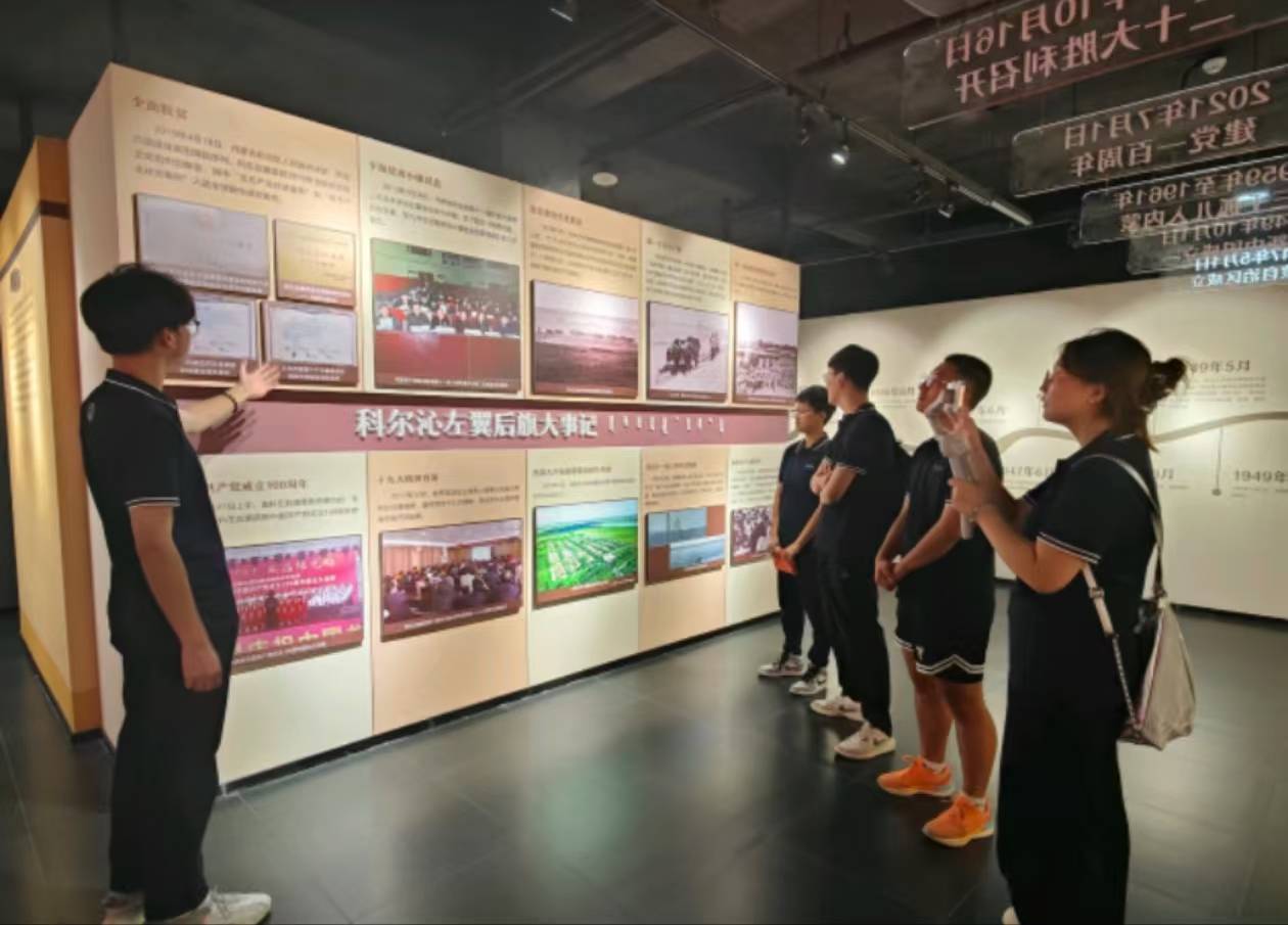 隨后,碧野興鄉實踐隊隊員滿懷熱忱地走進了非遺文化社區的甘旗卡博物館,這里猶如一座文化寶庫,珍藏著豐富的非物質文化遺產。每一面墻壁都講述著一段故事,從史前時期人類的初生之地到古代部落的繁榮,再到近代的變革與發展,歷史的脈絡清晰可見。不僅如此,一系列精美的傳統藝術品,如蒙古族刺繡、民族樂器和服飾,被精心陳列在展覽區。讓實踐隊隊員在欣賞美的同時,也感受到文化的魅力。